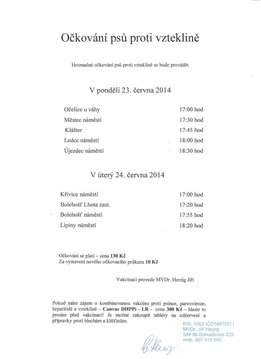 Úvod > Obec > Aktuálně z obce > Očkování psů proti vzteklině