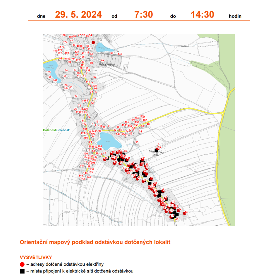 UPOZORNĚNÍ na odstávku elektřiny dne 29. 5. 2024 od 7:30 do 14:30 hodin