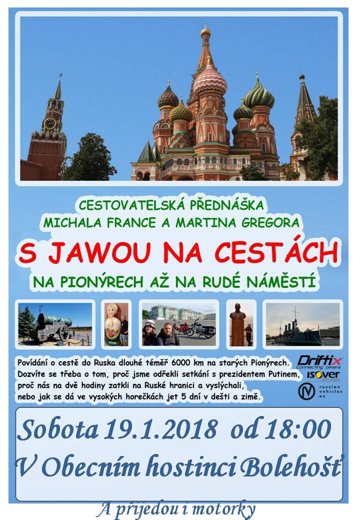 Úvod > Obec > Aktuálně z obce > Pozvánka na cestopisnou přednášku v Obecním hostinci Bolehošť „S JAWOU NA CESTÁCH"