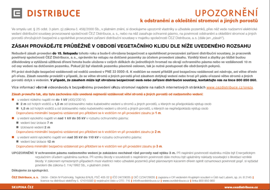 Úvod > Obec > Aktuálně z obce > Upozornění k odstranění a okleštění stromoví a jiných prostorů