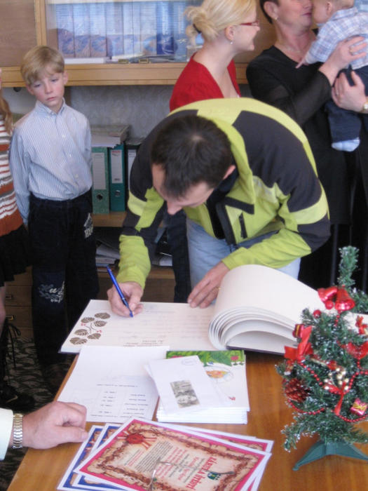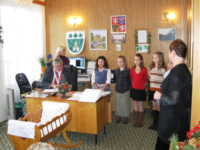 Letošní Vítání občánků vyšlo až těsně před vánočními svátky. Pan starosta obce František Kouba společně s paní Drahomírou Záleskou pozvali celkem pět nových občánků. Nakonec ale přišli se svými rodiči a přáteli pouze čtyři, neboť jeden byl nemocný.