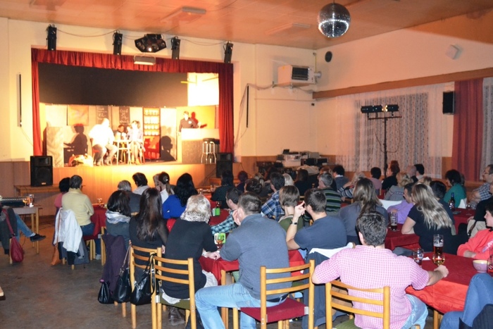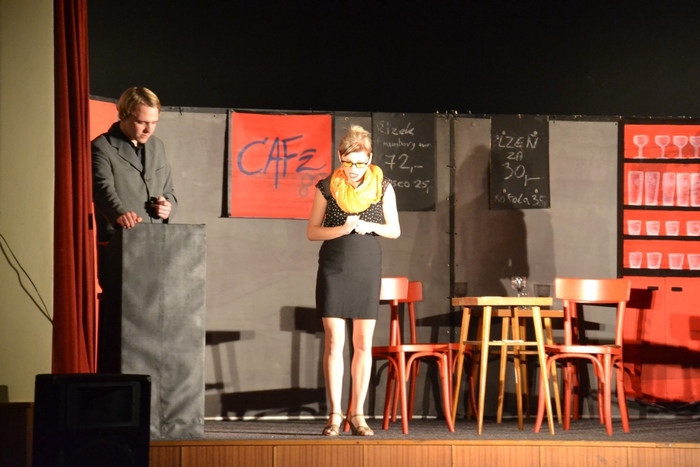 Humorná komedie o vztazích pobavila asi 80 divadelních hostů. Ti měli opět možnost výběru, posadit se jako v divadle do připravených řad židlí nebo se pohodlně usadit ke stolům a dát si k tomu třeba nějaké to pití.