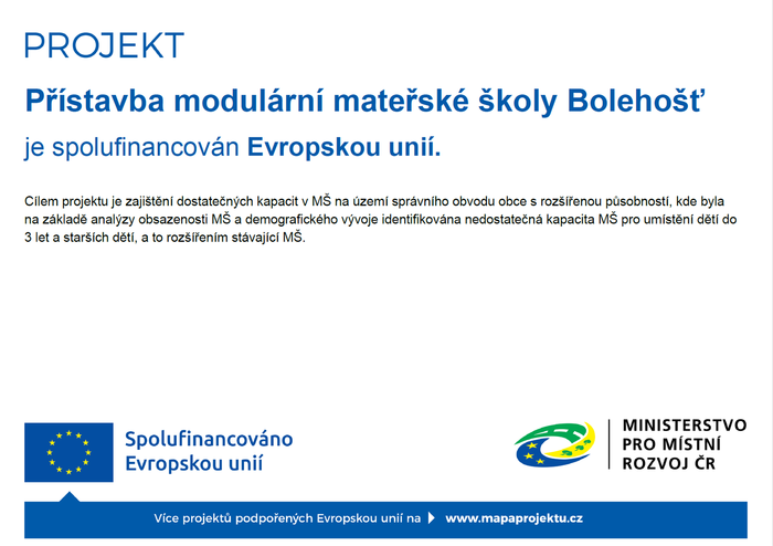 Úvod > Obec > Projekty > Přístavba modulární mateřské školy Bolehošť